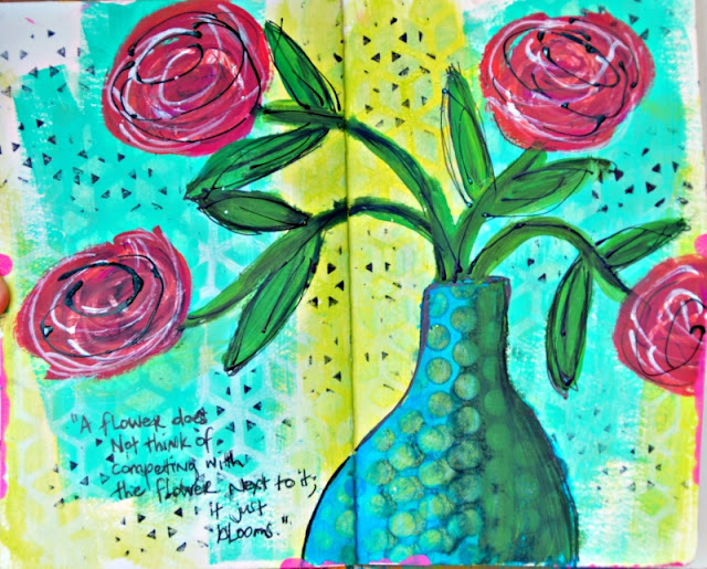 Thirdly, the amazing Lisa Oxley (I adore her style - she's a big fan of COLOUR like me) was participating in the #100daychallenge and her art journaling was popping up on my instagram and facebook feed, and it was making me so itchy to give this a go.......